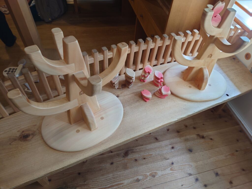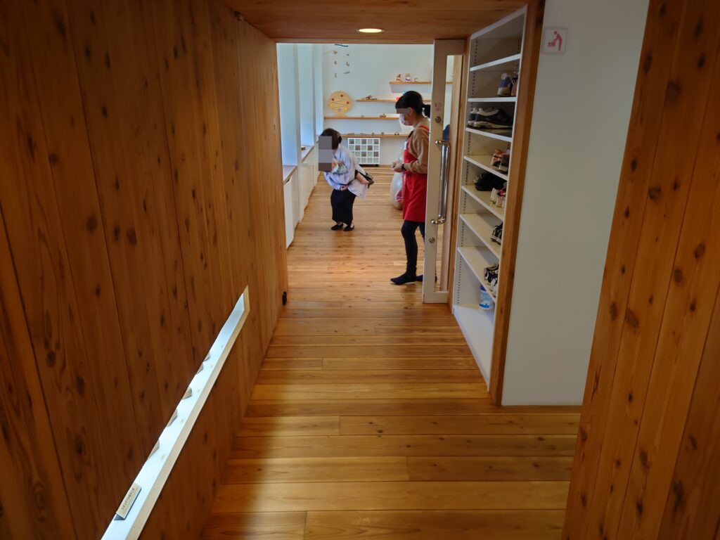 - この空間も遊具は木しばりで、木の滑り台や、木のトンネル、木のレールをはじめとする様々な玩具が用意されていました。