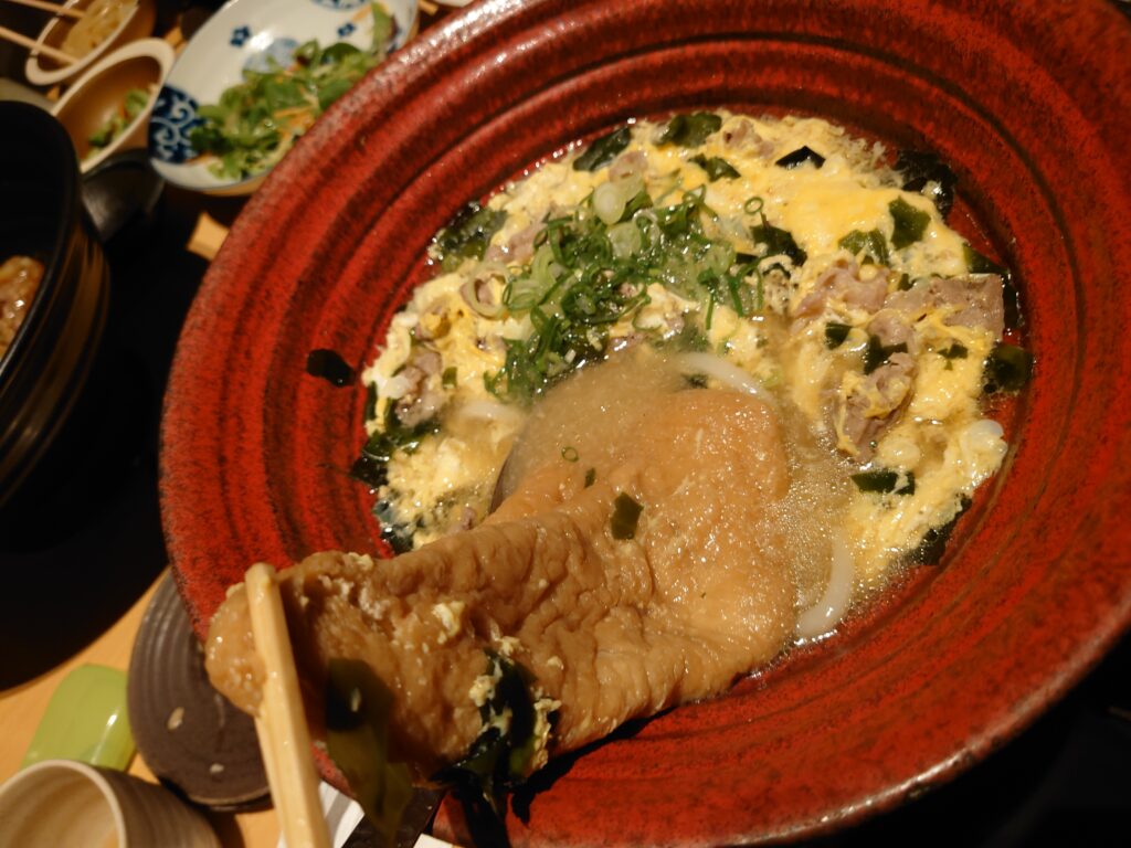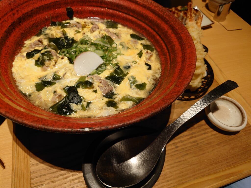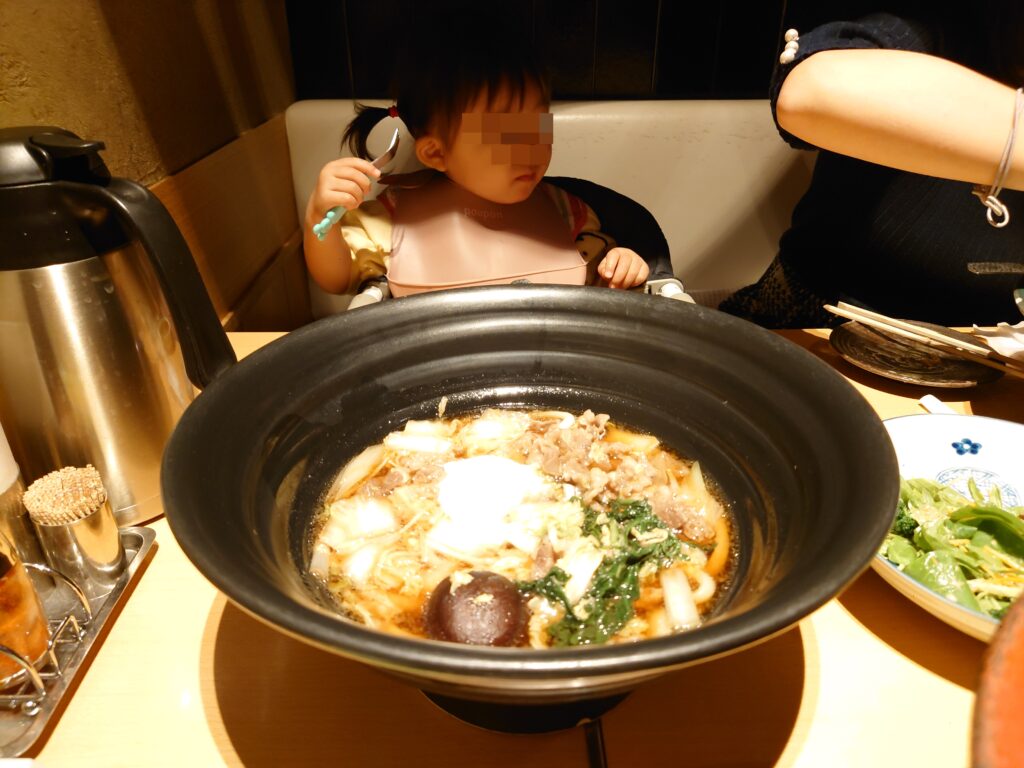 ちなみに娘に注文したのは、「すき焼きのおうどん」です。遠近感でわかりにくいかもしれませんが、やはりかなり器が大きいです。